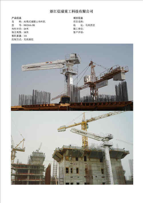 歸屬行業(yè):信瑞重HG24A-3R電梯井內(nèi)爬混凝土布料機(jī)
