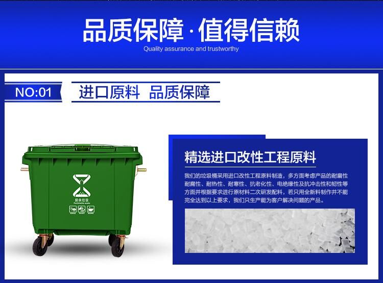 660升環(huán)衛(wèi)垃圾桶廠家,加厚新料戶外垃圾車價格,660升戶外垃圾桶批發(fā),賽普塑業(yè)生產的醫(yī)療垃圾桶采用高密度聚乙烯(HDPE)一次注模而成,絕無焊縫;塑料垃圾桶容易清洗,擦洗后仍光潔如新,目前在建設綠色重慶,健康重慶,宜居重慶等,而城市的形象都關系到垃圾桶,垃圾桶是城市中不可或缺的環(huán)保設施,如小區(qū)垃圾桶,街道垃圾桶,660升加厚垃圾桶廠家,加厚新料戶外垃圾桶價格,660升戶外垃圾桶批發(fā)馬路垃圾桶,物業(yè)垃圾桶等等。除了考慮垃圾桶的外形,重要的一點還是垃圾桶的質量和容量。我們生產的垃圾桶小到40升,大到上千升。大小容量均有,是物業(yè)及環(huán)保業(yè)的。供應重慶各區(qū)各縣各企業(yè)塑料垃圾桶,所有材質為PE新料制品。660升加厚垃圾桶廠家,加厚新料戶外垃圾桶價格,660升戶外垃圾桶批發(fā)